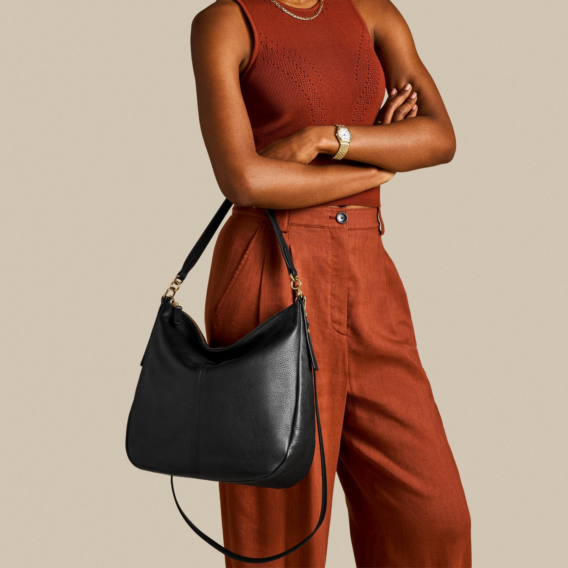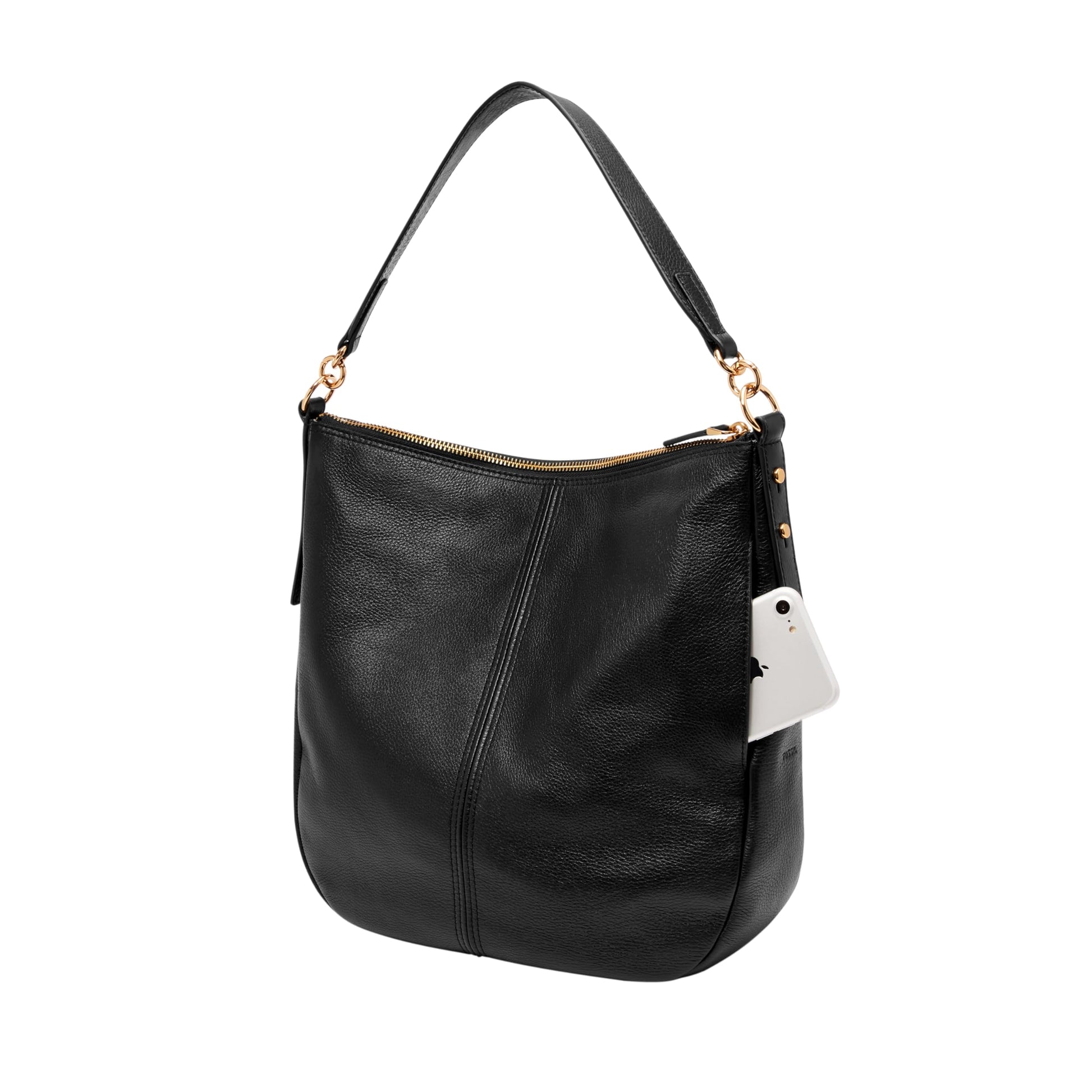 Fossil Women's Jolie Leather Hobo Purse Handbag, Hobo Shoulder Bag, Black
